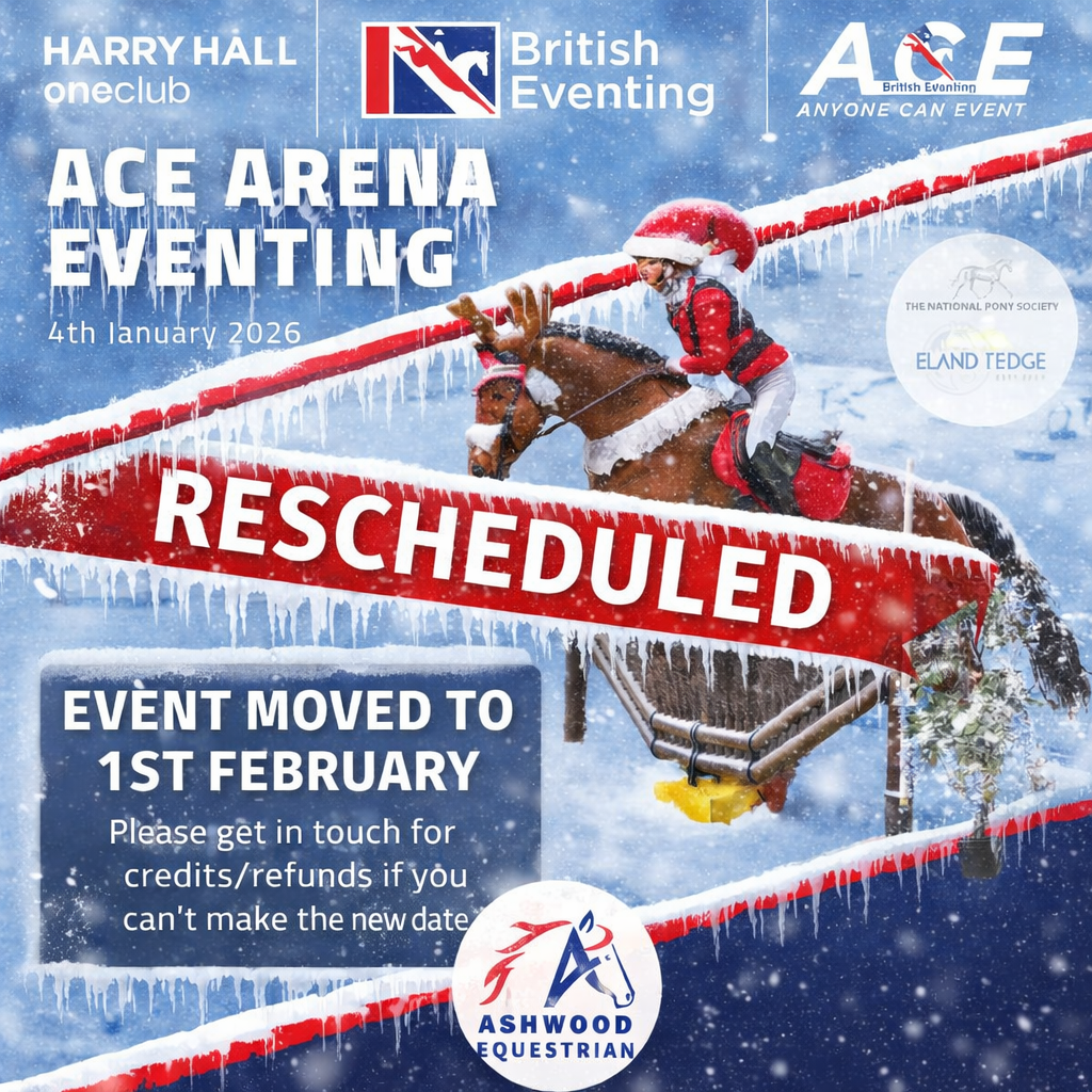 - The event may be cancelled without notice due to adverse weather. In the event of adverse weather it is recommended that you check the website www.ashwoodequestrian.com for any announcements. In the unlikely event of abandonment, entries may be carried over to a future event or refunded minus £5 admin fee.